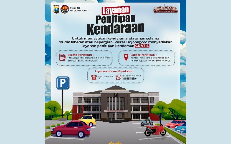 Kapolres Bojonegoro, AKBP Afrian Satya Permadi, S.H., S.I.K., M.I.K., menyatakan bahwa layanan penitipan kendaraan gratis ini akan tersedia di Mapolres Bojonegoro dan beberapa titik lainnya di wilayah Bojonegoro.