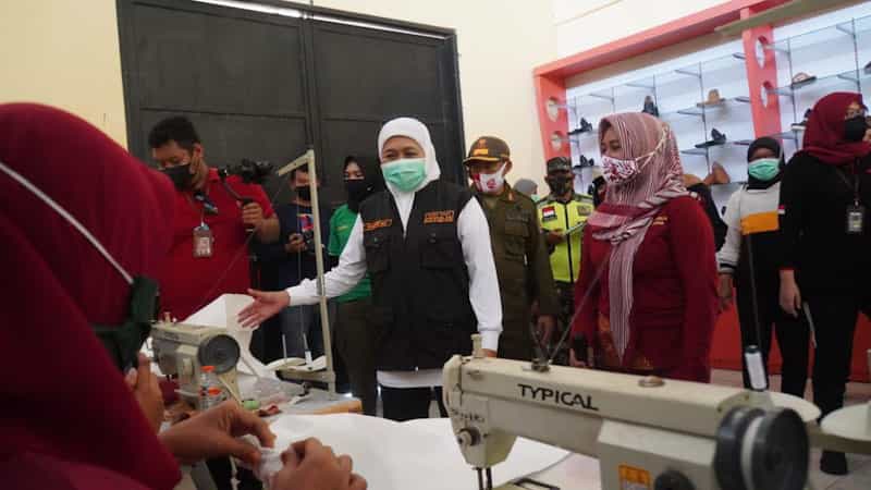 Kemudian, kunjungan dilanjutkan ke gedung workshop industri alas kaki. Gubernur Wanita Pertama di Jawa Timur ini melihat secara langsung proses produksi serta hasil karya para pelaku usaha mikro Kota Mojokerto seperti pembuatan masker dan APD, kerajinan bordir dan batik.