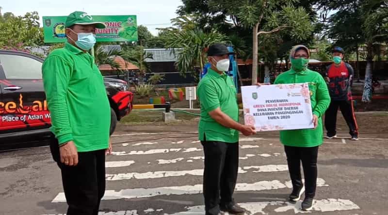 Ketua Tim Penggerak PKK Kota Madiun, Ny. Yuni Setyowati Maidi secara simbolis menyerahkan Green House Hidroponik