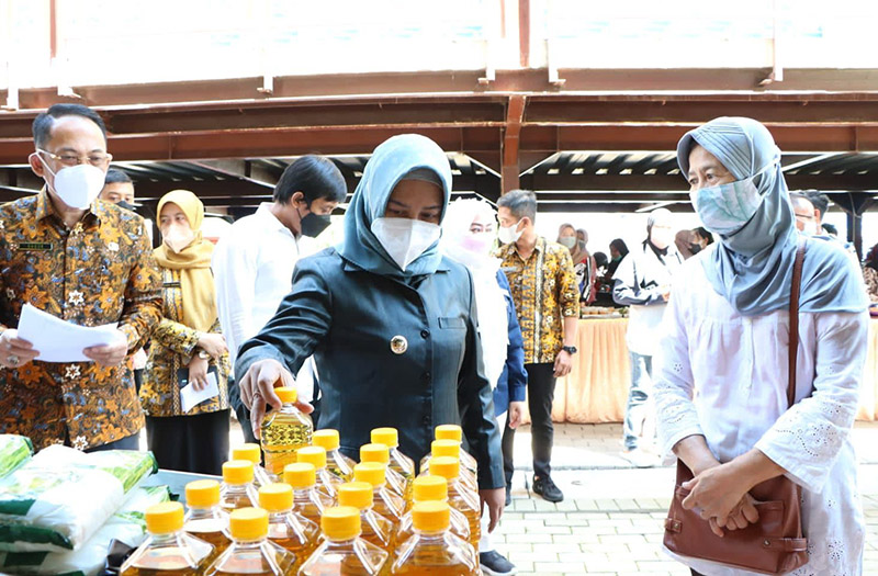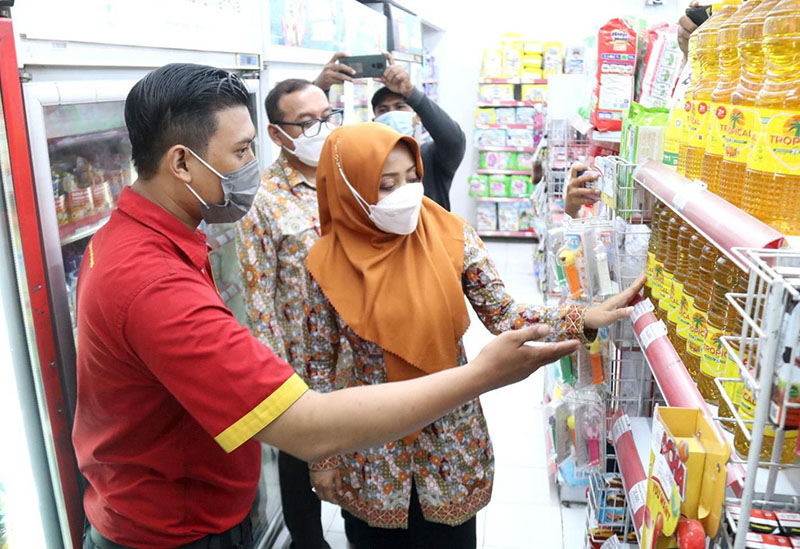 JATIMPOS.CO/KABUPATEN MOJOKERTO - Bupati Mojokerto, Ikfina Fahmawati didampingi Kepala Dinas Perindustrian dan Perdagangan (Disperindag) Kabupaten Mojokerto, M Iwan Abdillah melakukan inspeksi mendadak (sidak) terkait harga dan persediaan minyak goreng di minimarket, seperti Alfamart dan Indomaret yang terletak di Jalan Raya R.A. Basoeni, Kecamatan Sooko, Kabupaten Mojokerto, Kamis (20/1) sore.