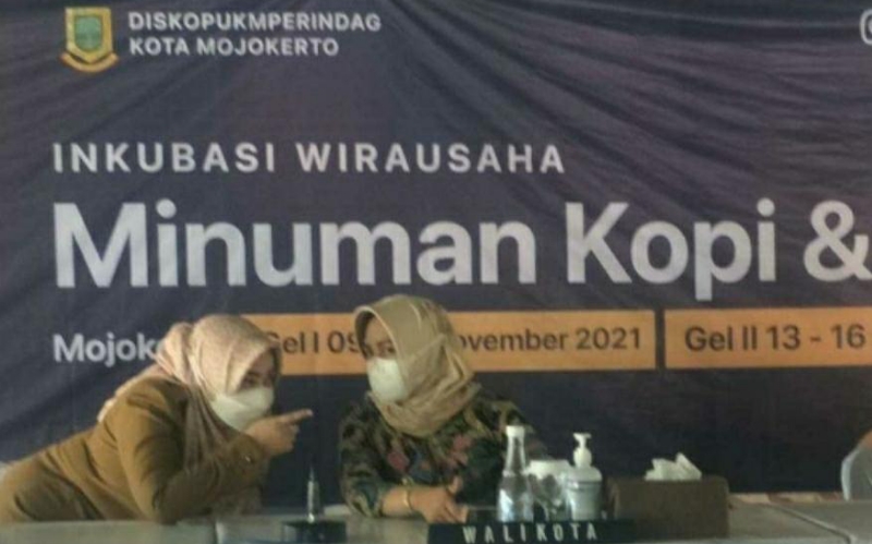 JATIMPOS.CO/KOTA MOJOKERTO - Berbagai upaya dilakukan Pemkot Mojokerto untuk pulihkan ekonomi masyarakat dimasa pandemi covid-19. Salah satunya dengan menggelar pelatihan inkubasi wirausaha minuman kopi dan coklat di Rest Area Gunung Gedangan, Magersari, Kota Mojokerto Selasa (9/11/2021).