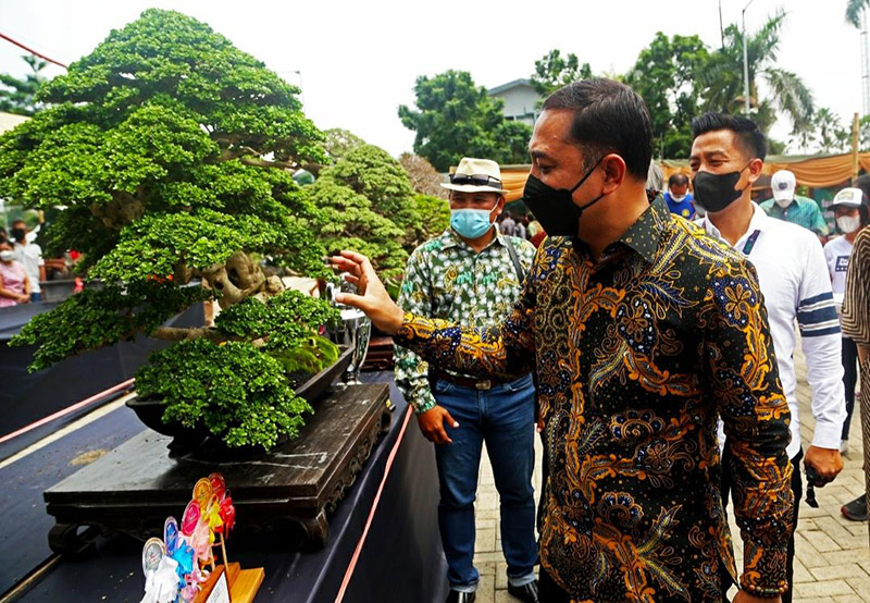 JATIMOPOS.CO/SURABAYA - Sebanyak 950 pohon bonsai bersaing dalam Pameran dan Kontes Bonsai Nasional Surabaya, yang berlangsung di East Parking Area Ciputra World (Ciwo) sejak tanggal 8 - 18 November 2021. Ratusan bonsai terbaik itu, merupakan milik para kolektor yang berasal dari seluruh daerah di Indonesia.