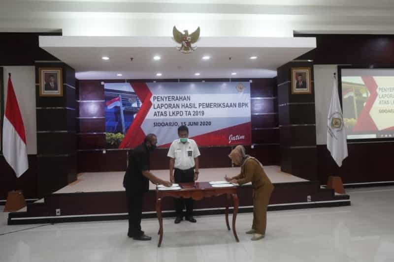 Di tahun ini, hasil laporan pemeriksaan atas Laporan Keuangan Pemerintah Daerah (LKPD) tahun anggaran 2019 dari Kantor Perwakilan Badan Pemeriksa Keuangan (BPK) Provinsi Jawa Timur, diterima langsung oleh Wali Kota Mojokerto Ika Puspitasari, Senin (15/6/2020).