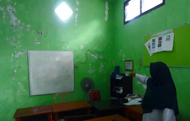 JATIMPOS.CO/SIDOARJO  - Pembangunan wisma atlet Sidoarjo membawa dampak kerugian besar bagi masyarakat disekitarnya. Pasalnya, banyak ditemukan keretakan dinding dan lantai rumah warga rusak. Salah satunya diketahui di bangunan sekolah dan ruang kelas SLB-AC Dharma Wanita, Jl. Pahlawan Sidokumpul, Kelurahan Lemah Putro, Kecamatan Sidoarjo, Kamis (19/12/2019).
