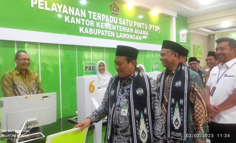 JATIMPOS.CO/LAMONGAN – Untuk memberikan pelayanan prima kepada masyarakat, Kepala Kantor Wilayah (KaKanwil) Kementerian Agama (Kemenag) Jawa Timur Dr. H. Husnul Maram, M. HI melaunching Pusat Pelayanan Terpadu Satu Pintu (PTSP) Kantor Kementerian Agama Kabupaten Lamongan.
