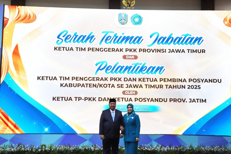 JATIMPOS.CO/JOMBANG - Yuliati Nugrahani Warsubi resmi dilantik menjadi Ketua Tim Penggerak (TP) PKK Kabupaten Jombang sekaligus Ketua Pembina Posyandu Kabupaten Jombang periode 2025-2030 bersama dengan Ketua TP PKK kabupaten/kota se Jawa Timur. Pelantikan dilakukan oleh Ketua TP PKK Jawa Timur, Arumi Bachsin, pada Minggu (02/03/2025) di gedung Grahadi, Surabaya.