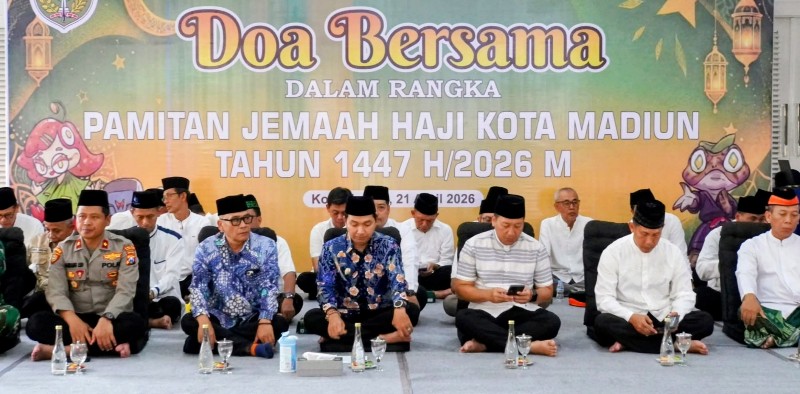 JATIMPOS.CO/KOTA MADIUN — Sebanyak 227 calon jemaah haji Kota Madiun tahun 1447 Hijriah/2026 Masehi mengikuti doa bersama sekaligus pamitan dengan Pemerintah Kota Madiun dan Forum Koordinasi Pimpinan Daerah (Forkopimda) di Rumah Dinas Wali Kota Madiun, Selasa (21/4/2026).