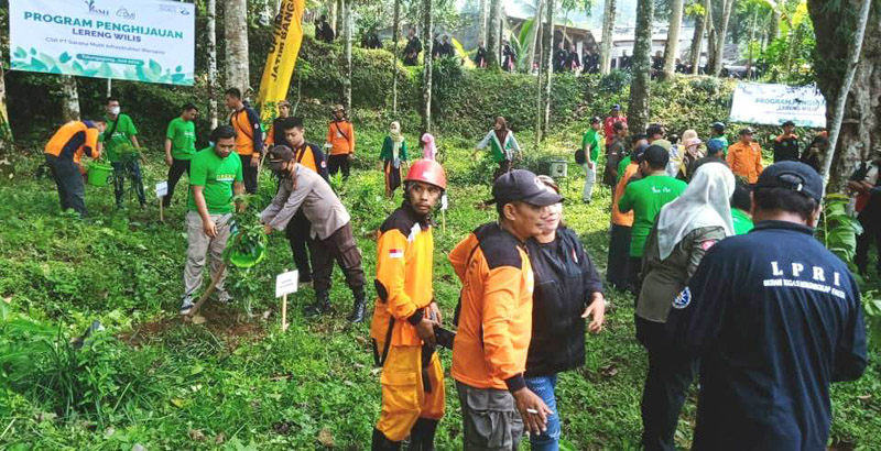 JATIMPOS.CO/TULUNGAGUNG - Dalam memperingati Hari Lingkungan Hidup Sedunia PT SMI dan LMI bersama Komunitas Pecinta Hutan Lindung Sendang (KPHLS), KUD Tani Wilis serta 58 dari organisasi mitra forum pengurangan bencana melakukan kegiatan penanaman 25 ribu bibit pohon di area Dusun Jambuwok Desa Nglurup Kecamatan Sendang, Minggu (5/6/2022).