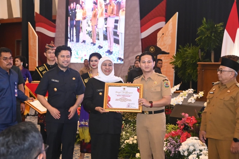 Bupati Trenggalek Raih Penghargaan Pembina Siskamling Terpadu Merah Putih Terbaik Jawa Timur