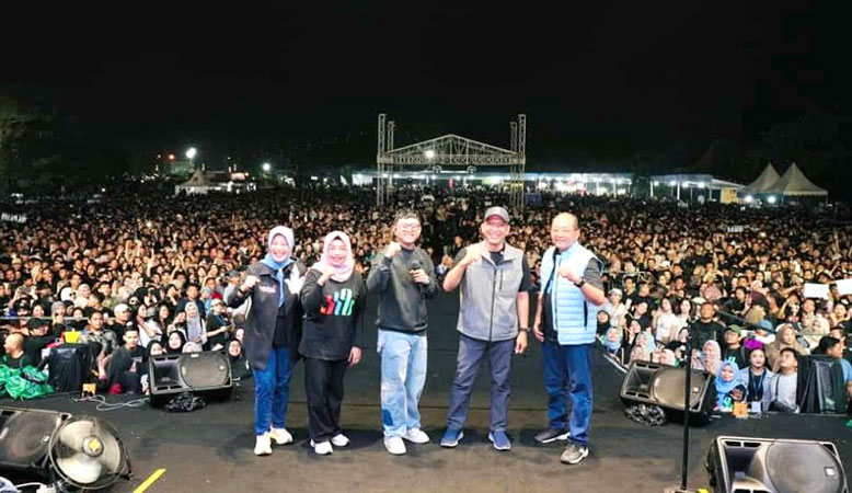 JATIMPOS.CO/BOJONEGORO - Malam penuh cahaya berpadu sorak gembira menemani penampilan Denny Caknan di Go Fun Bojonegoro, Rabu (23/10/2025). Ribuan warga yang hadir menambah kehangatan suasana malam, yang merupakan momen perayaan Hari Jadi Bojonegoro (HJB) ke-348.