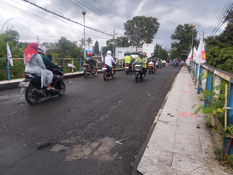 JATIMPOS.CO/BONDOWOSO. Ambruknya Jembatan Sukowiryo di Jalan Mastrip menyebabkan arus lalu lintas dialihkan ke sejumlah jalur alternatif, termasuk melalui Jembatan Koncer. Akibatnya, volume kendaraan di jalur tersebut meningkat signifikan dan menjadi perhatian Dinas Bina Marga, Sumber Daya Air dan Bina Konstruksi (BSBK) Bondowoso.