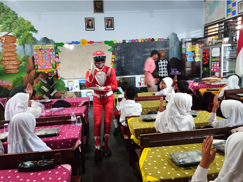 SPPG Kademangan Hadirkan Power Rangers Saat Bagikan MBG, Siswa Antusias Menyambut