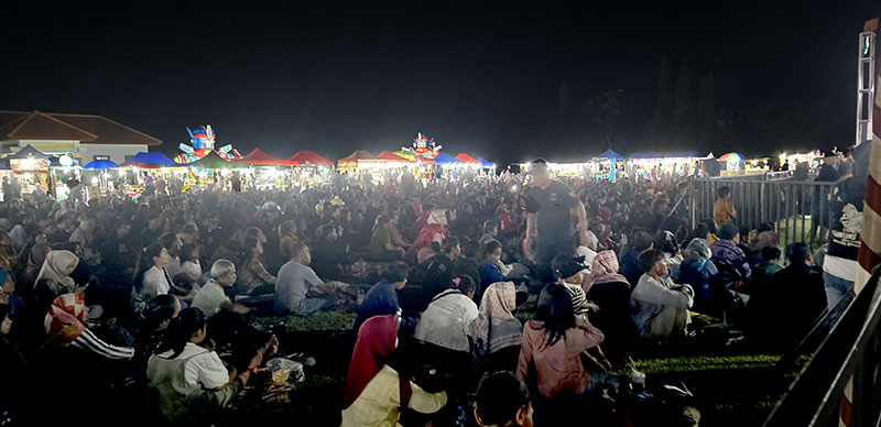 Penonton memadati lapangan Kelurahan Kota Blitar menyaksikan pergelaran jaranan WAB (24/5/2025)