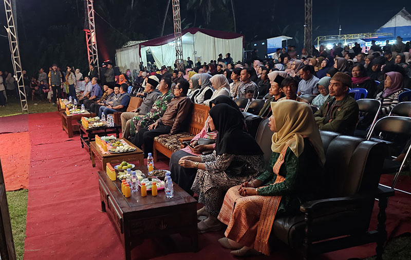 Penonton wayang kulit lakon "Semar Mbangun Khayangan" dalang Ki Minto Darsono dan Tathit Wibhatsu, memadati Lapangan Sebeng Desa Doko Kabupaten Blitar, Sabtu malam (26/7/2025)