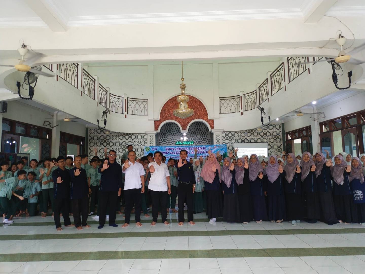 Nampak hadir pula Kepala Sekolah SMP Al Falah Assalam Sidoarjo Bpk. M. Ma’ruf, M.Pd., para Guru SMP Al Falah Assalam Sidoarjo, Murid SMP Al Falah kurang lebih 200 peserta.