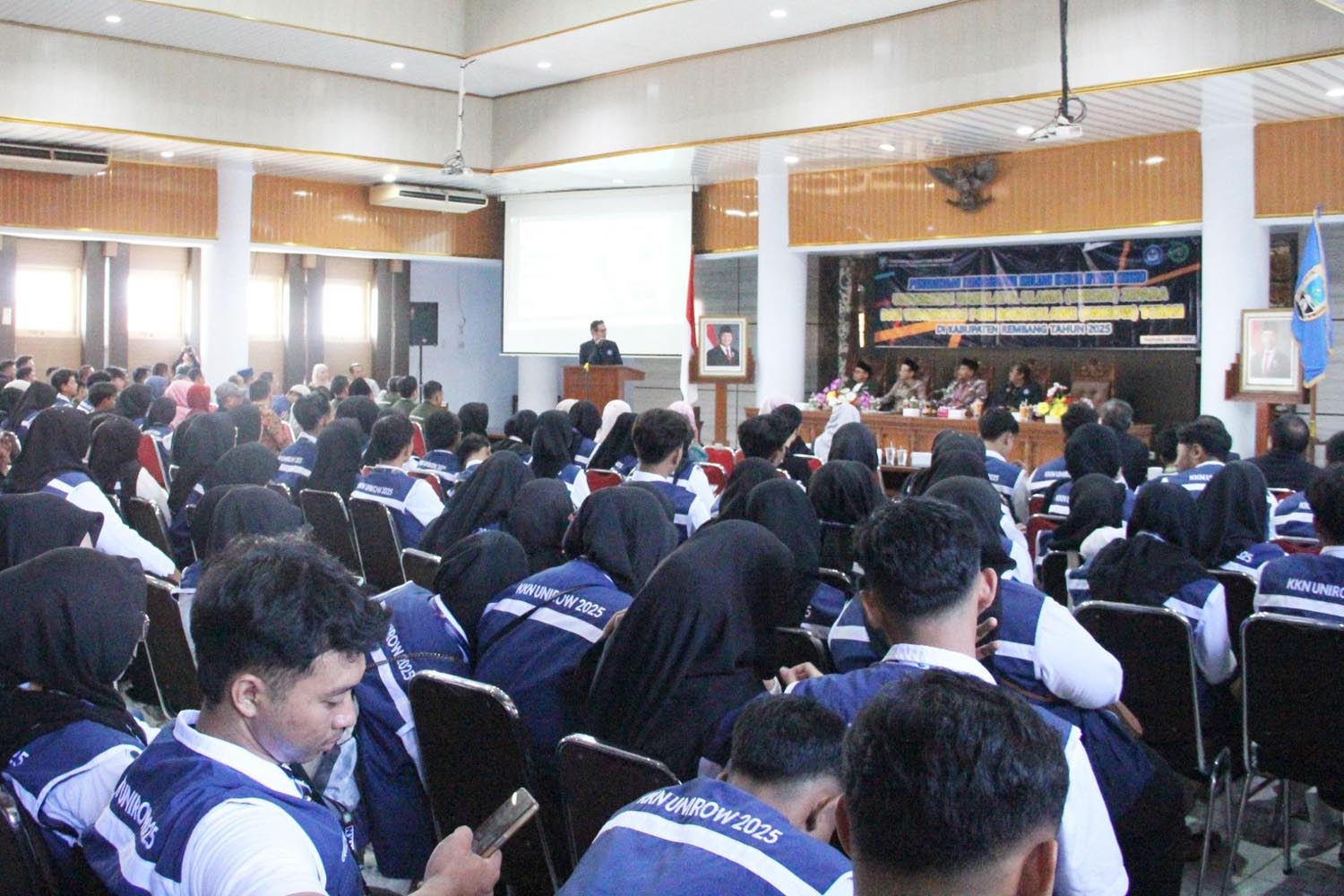 JATIMPOS.CO/TUBAN – Sebanyak 150 mahasiswa Universitas PGRI Ronggolowe (Unirow) Tuban mengikuti Kuliah Kerja Nyata (KKN) di Kabupaten Rembang. Dalam pelepasannya diterima langsung Bupati Rembang, Harno. Serah terima dilaksanakan di Aula Lantai IV Setda Kabupaten Rembang oleh Rektor Unirow, Dr. Warli, pada Selasa (22/7/2024).