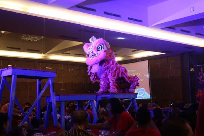 Bertempat di Bima Ballroom, acara dibuka pada pukul 19.00 wib dengan atraksi Barongsai. Para tamu pun dapat berinteraksi dengan barongsai, diantaranya dengan memberikan angpao, yang dipercaya dapat menangkal bala dan mendatangkan keberuntungan bagi pemberinya.