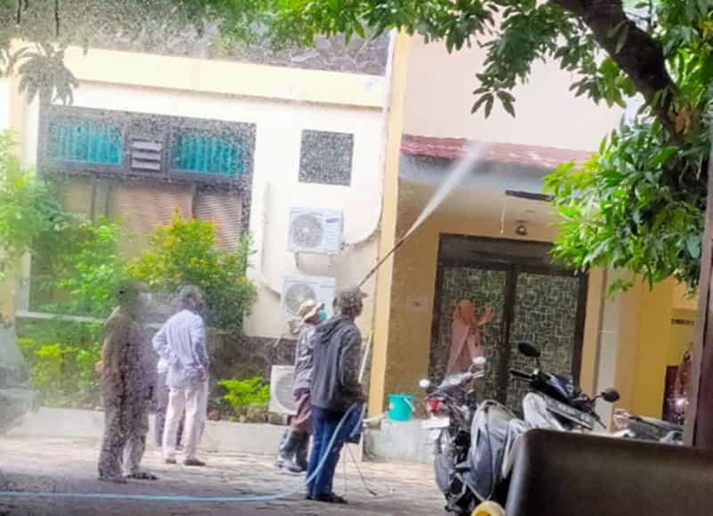 Pada hari Sabtu itu, lebih enam titik di Surabaya dan Gresik, dilakukan penyemprotan disinfestan. Sebanyak tujuh personal dikibatkan dalam aksi sosial ini.