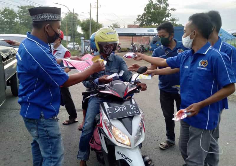 Diantaranya sebanyak 250 masker disebar di setiap titik lokasi, di jalan raya Tanjung Kecamatan Camplong batas dengan Zona merah sebelumnya, yaitu Pamekasan, Jalan Bahagia Sampang atau depan Kantor PWI Sampang, serta lokasi Pasar rakyat Rongtengah Sampang.