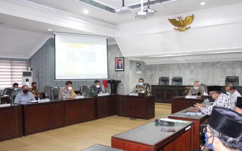 JATIMPOS.CO// KABUPATEN MOJOKERTO – Guna membahas tata pelaksanaan Hari Raya Idulfitri 1441 hijriyah tahun 2020 di tengah masa pandemi Covid 19. Bupati Mojokerto Pungkasiadi SH, memimpin rakor forkopimda bersama MUI dan Lembaga Keagamaan Islam di Ruang Satya Bina Karya, Kamis (21/5/2020) .