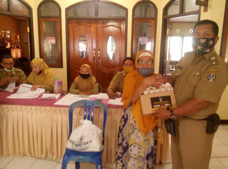 Siti Maesaroh, warga RT 01/RW 11 Dusun Jiwut, salah satu warga penerima paket sembako Covid~19 mengaku sangat terbantu dengan program ini.