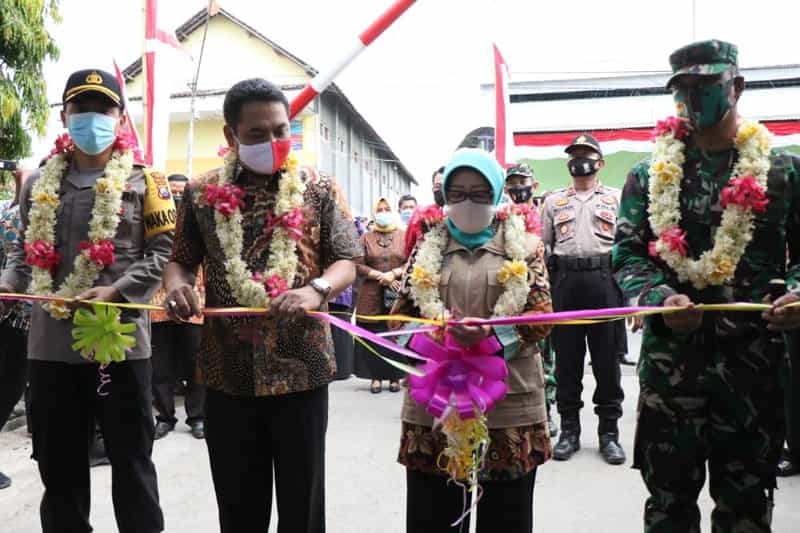 JATIMPOS.CO/JOMBANG - Bupati Jombang Hj Mundjidah Wahab didampingi Wakil Bupati, Sumrambah, Dandim 0814 Letkol Inf Triyono dan Wakapolres Jombang Kompol Wahyu Prista SIK meresmikan Dusun Pule Desa Tanjunggunung Kecamatan Peterongan menjadi Kampung Tangguh Semeru, pada Selasa (14/7/2020).