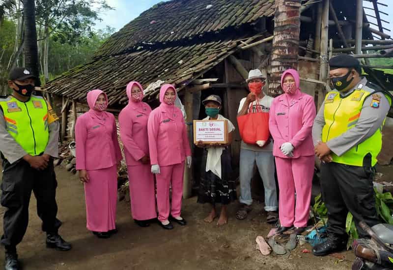 JATIMPOS.CO/KABUPATEN NGLEGOK - Bhayangkari Ranting Nglegok Cabang Polres Blitar Kota melaksanakan giat bakti sosial di Desa Kedawung Kecamatan Nglegok Kabupaten Blitar, Jumat (14/8/2020).