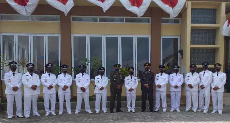 JATIMPOS.CO/KABUPATEN BLITAR - Muspika Kecamatan Nglegok turut mengikuti upacara bendera Hari Ulang Tahun (HUT) Republik Indonesia ke-75 secara virtual yang tersambung dengan Pemerintah Pusat, Senin (17/8/2020).