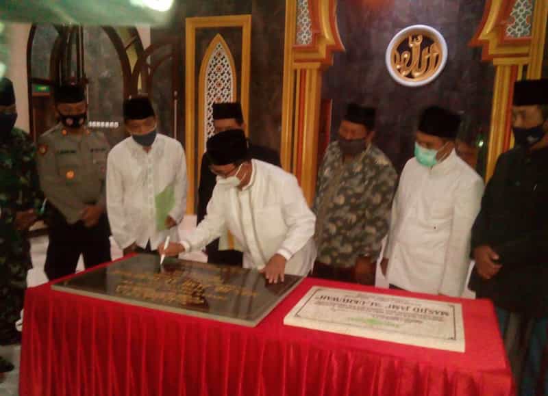 JATIMPOS.CO/KABUPATEN BLITAR - Bupati Blitar Drs H Rijanto berkenan meresmikan Masjid Jami Al Ukhwuwah di Dusun Klampok Desa Jiwut Kecamatan Nglegok Kabupaten Blitar, Selasa (15/9/2020) malam.