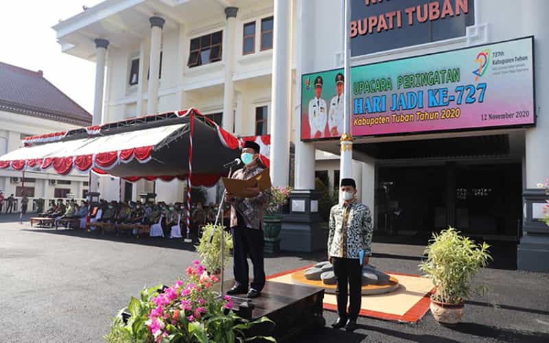 JATIMPOS.CO/TUBAN – Berbeda dengan pelaksanaan di tahun-tahun sebelumnya, Upacara Peringatan Hari Jadi ke-727 Kabupaten Tuban berlangsung dengan menerapkan protokol kesehatan.
