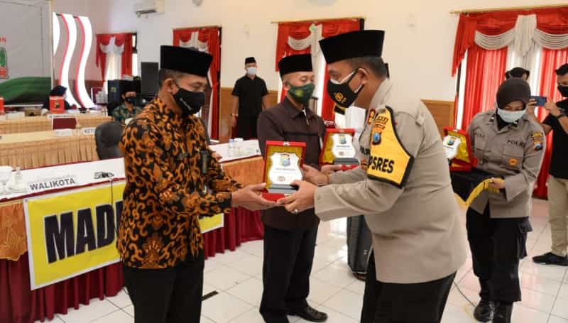 Sementara itu, pencanangan Gerakan Santri Bermasker secara virtual juga digelar di Gedung Sunaryo Polres Madiun Kota.