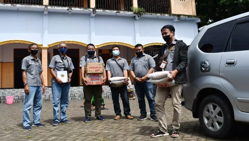 Anggota PWI Madiun menyalurkan bantuan berupa bahan pokok dan uang tunai ke Panti Asuhan Nailul Munaa.