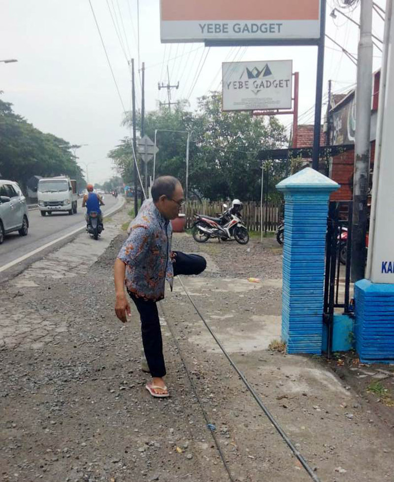 Bergelantung, Warga Sukodadi Keluhkan Kabel Telkom Kendur Depan Kantor BDL Sukodadi