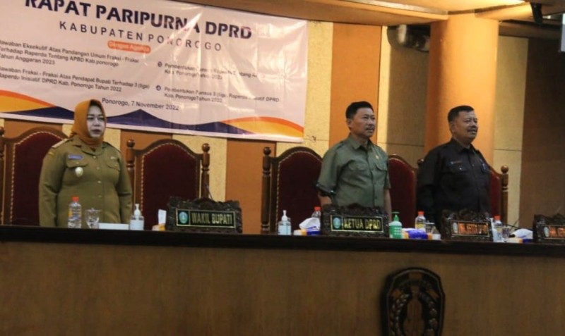 Rapat Paripurna dipimpin oleh Wakil Ketua DPRD Ponorogo, Dwi Agus Prayitno, dihadiri juga oleh Wakil Ketua DPRD Ponorogo, Anik Suharto, anggota DPRD Ponorogo, Wakil Bupati Ponorogo Hj. Lisdyarita dan Forkopimda Ponorogo.
