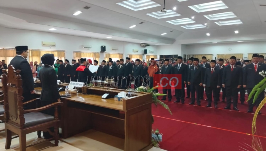 JATIMPOS.CO//KEDIRI - Bertempat di Ruang Graha Sabha Candha Bhirawa, DPRD Kabupaten Kediri menggelar Rapat Paripurna dengan agenda Pengucapan Sumpah Janji Anggota DPRD Kabupaten Kediri Hasil Pemilu 2024, Sabtu (24/8/2024).
