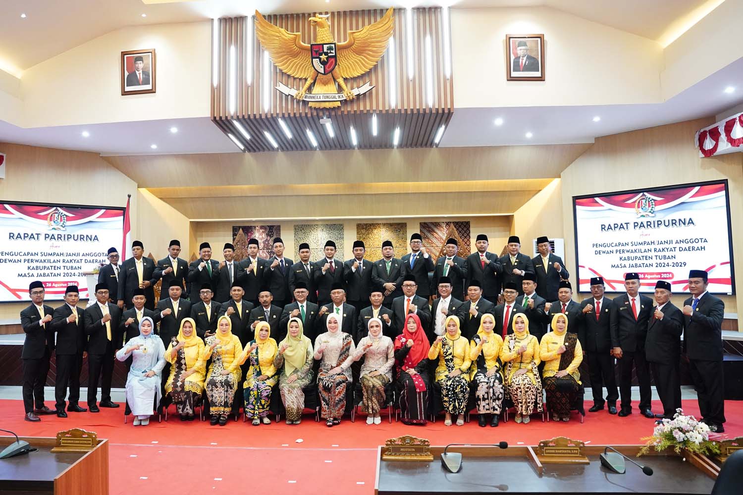 Pengambilan sumpah janji legislatif ini dihadiri Bupati Tuban Aditya Halindra Faridzky bersama Forkopimda Tuban lainnya, pimpinan instansi vertikal dan perbankan, sekda Tuban, pimpinan OPD dan camat, serta keluarga anggota DPRD 2024-2029.