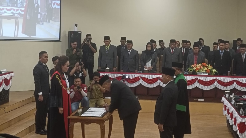 Prosesi pelantikan dan pengambilan sumpah ini berlangsung melalui Rapat Paripurna DPRD di ruang sidang DPRD Kota Mojokerto.