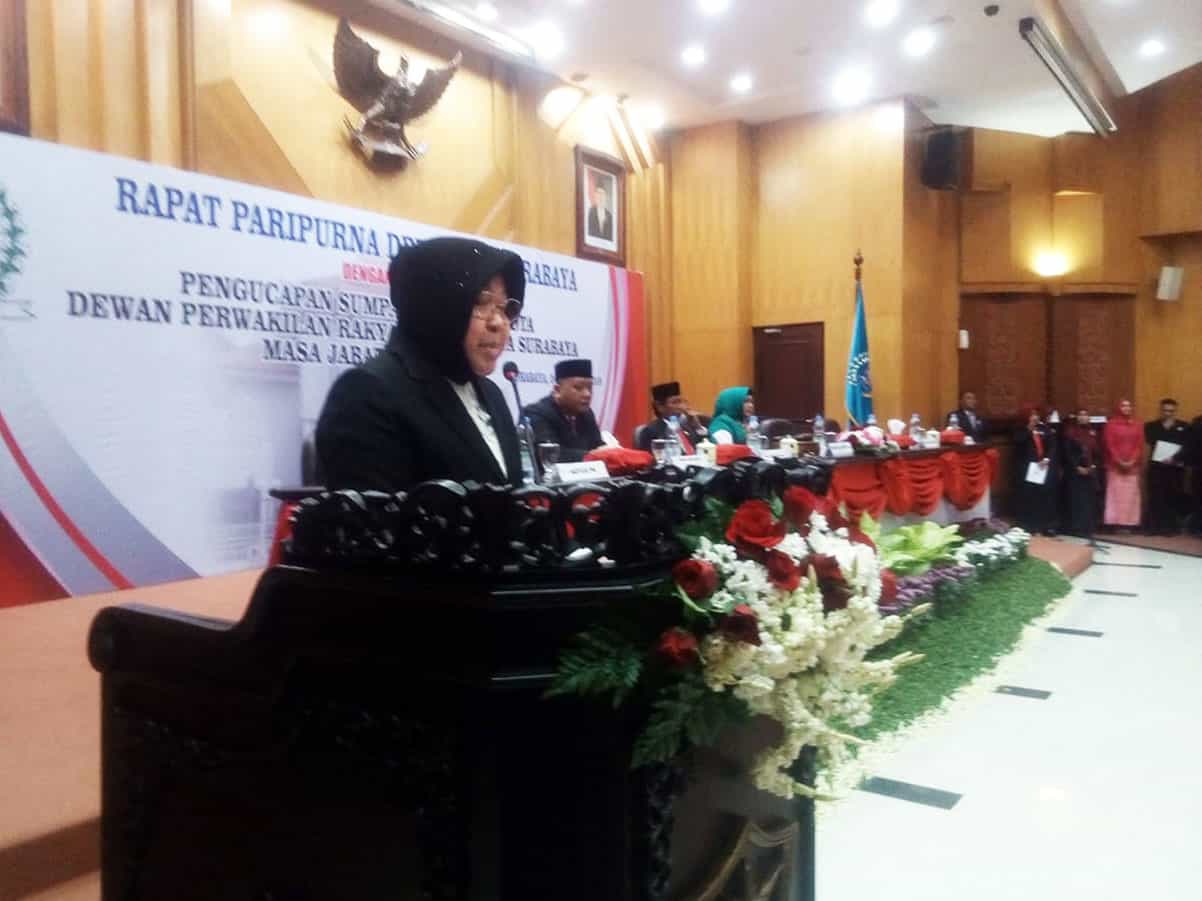Sementara Walikota Surabaya Tri Rismaharini dalam sambutannya tanpa teks menyatakan kepada para anggota DPRD kota Surabaya yang lama (2014-2019) bila ada kesalahan baik disengaja maupun tidak sengaja mohon untuk diberi maaf sebesar-besarnya.