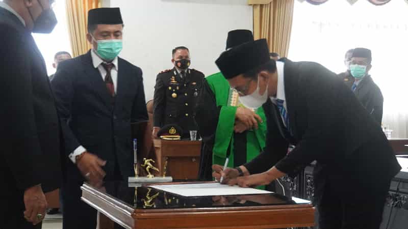 JATIMPOS.CO/BANYUWANGI -DPRD Kabupaten Banyuwangi menggelar rapat paripurna pergantian antar waktu (PAW) pelantikan anggota dewan dari Fraksi Partai Demokrasi Indonesia Perjuangan (PDIP), Senin (15/2/2021).
