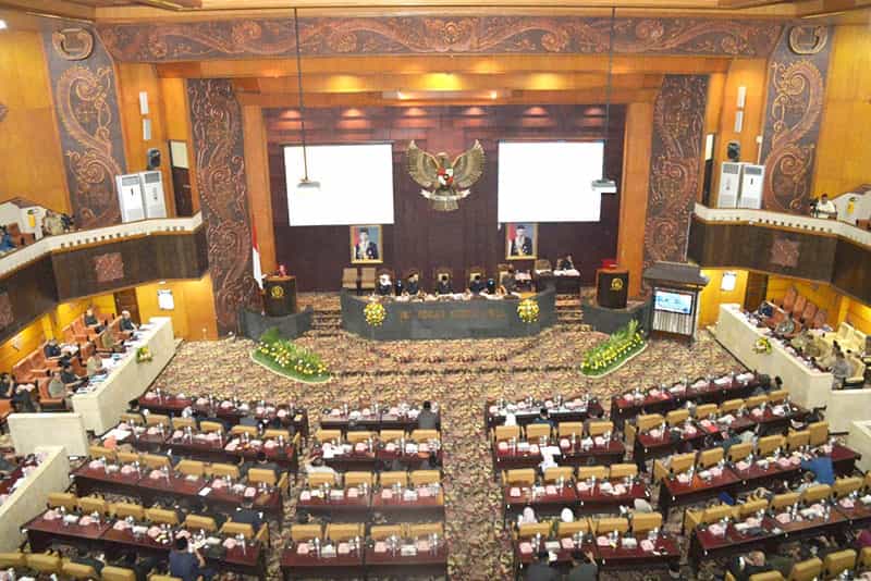 JATIMPOS.CO/PAMEKASAN - Dewan Perwakilan Rakyat Daerah (DPRD) Kabupaten Pamekasan menggelar rapat paripurna dengan agenda jawaban eksekutif atas pandangan umum fraksi terhadap Rancangan Peraturan Daerah (Raperda) tentang APBD tahun 2020 Kabupaten Pamekasan, Senin (04/11).