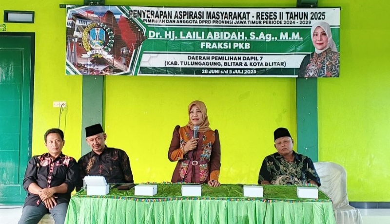 JATIMPOS.CO/BLITAR – Anggota DPRD Jawa Timur dari Fraksi Partai Kebangkitan Bangsa (PKB), Dr. Hj. Laili Abidah, S.Ag., M.M., menyampaikan sejumlah keluhan masyarakat yang diserap selama reses tahap II tahun 2025 di Daerah Pemilihan (Dapil) 7, yang mencakup Kabupaten Tulungagung, Kabupaten Blitar, dan Kota Blitar.