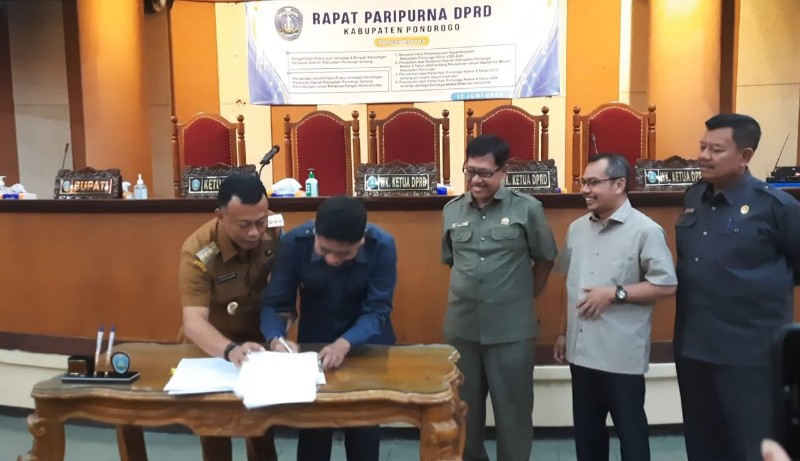 JATIMPOS.CO/PONOROGO - Dewan Perwakilan Rakyat Daerah (DPRD) Kabupaten Ponorogo menggelar Rapat Paripurna yang dipimpin langsung oleh Ketua DPRD Ponorogo H Sunarto, S.Pd didampingi Wakil Ketua DPRD Ponorogo, dihadiri Anggota DPRD Ponorogo, Bupati Ponorogo H Sugiri Sancoko, Forkopimda dan para tamu undangan lainnya di Ruang Sidang Paripurna, lantai 3 Gedung DPRD Ponorogo. Senin (12/6/2023).