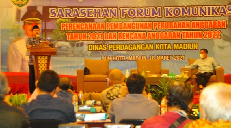 JATIMPOS.CO/KOTA MADIUN - Pemerintah Kota (Pemkot) Madiun melalui Dinas Perdagangan Kota Madiun menggelar sarasehan forum komunikasi perencanaan pembangunan perubahan anggaran tahun 2021 dan rencana anggaran tahun 2022.