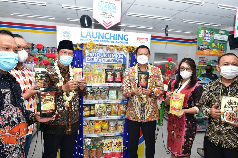 Enam belas produk Lamongan yang berhasil masuk retail modern yakni produk Bu Bintang Krupuk Trasi, Jajanan Ibu Kembang Goyang, Jajanan Ibu Kuping Gajah, Jajanan Ibu Pastel Mungil, Twinfood Jackfriut Coffee, An-Nur Kopi Rempah, An-Nur Wedang Pokak, Kirana Teri Krezz, Jajanan Ibu Kerupuk Ikan Tengiri, Snackchat Akar Kelapa, Baloon Ladu Sing Cemilan Kekinian, Snackchat Gapit Ketan Rasa Banwang, 2R Ting-Ting Rasa Original, 2R Kripik Singkong Ayam Panggang, Jozz Emping Melinjo, dan Palupi Soes Kering Original.