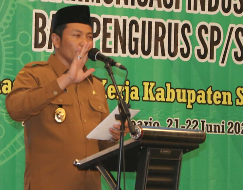 JATIMPOS.CO/SIDOARJO - Wakil Bupati Subandi, membuka secara resmi kegiatan peningkatan sarana hubungan industrial, bagi pengurus SP/SB, di Luminor Hotel, Senin (21/6/2021).