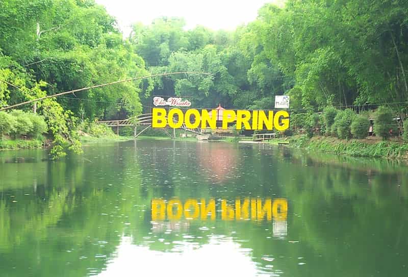 Awalnya Boon Pring ini bernama Sumber Andeman atau Taman Wisata Andeman. Air sungai telaga berasal dari enam mata air, yakni Sumber Adem, Sumber Towo, Sumber Gatel, Sumber Maron, Sumber Krecek, dan Sumber Seger. Sumber Adem dan Sumber Towo menjadi mata air terbesar.