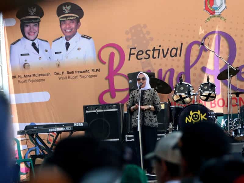 JATIMPOS.CO//BOJONEGORO - Bupati Bojonegoro, DR. Hj. Anna Mu'awanah membuka festival Band Remaja 2019. Acara yang dilaksanakan di lapangan Kecamatan Malo, Minggu, (07/07/2019) ini hadir pula Asisten Bidang Pemerintahan, Asisten Bidang Perekonomian dan Pembangunan, Camat se-Kabupaten Bojonegoro, serta para peserta Group Band.