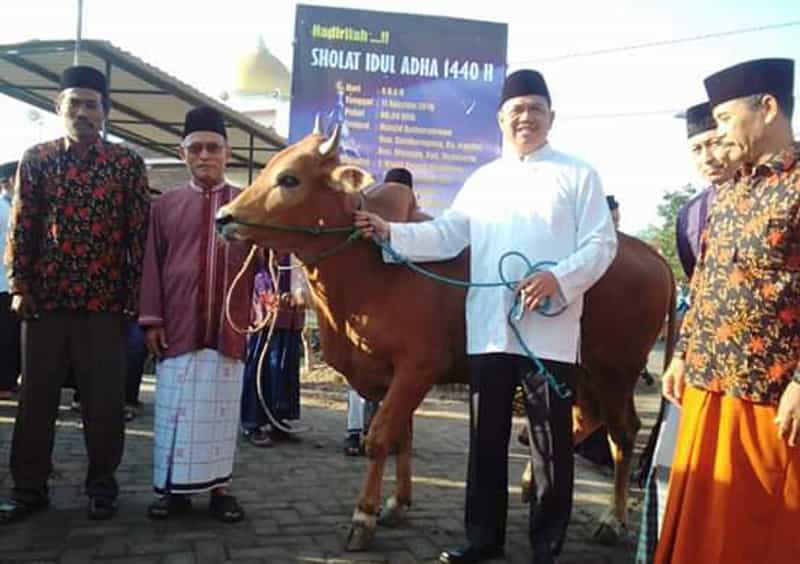 Pada kesempatan tersebut, Wabup melakukan penyerahan hewan kurban berupa sapi kepada panitia kurban Masjid Nurul Huda.