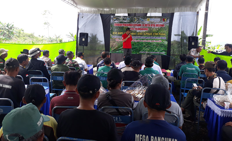 JATIMPOS.CO/TULUNGAGUNG - Penanaman 1200 bibit pohon kopi dan alpukat dilakukan di Bukit Neama Desa Besuki Kecamatan Bandung Kabupaten Tulungagung, Rabu (7/12/2022).