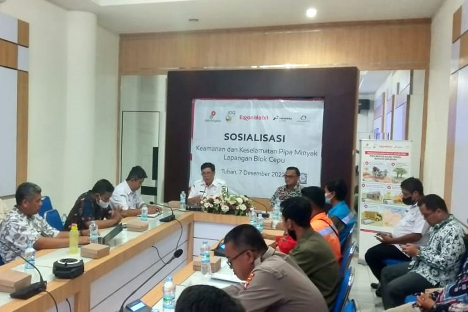 JATIMPOS.CO/TUBAN – Bertempat di ruang rapat kantor Badan Perencanaan Pembangunan Daerah (Bappeda) Kabupaten Tuban pada Rabu (7/12), ExxonMobil Limited Cepu (EMCL) menggelar sosialisasi keamanan dan keselamatan jalur pipa minyak lapangan blok cepu. Kegiatan yang dilakukan secara periodik ini sasarannya meliputi stake holder dari OPD, PLN, Perhutani, Telkom, dan media.